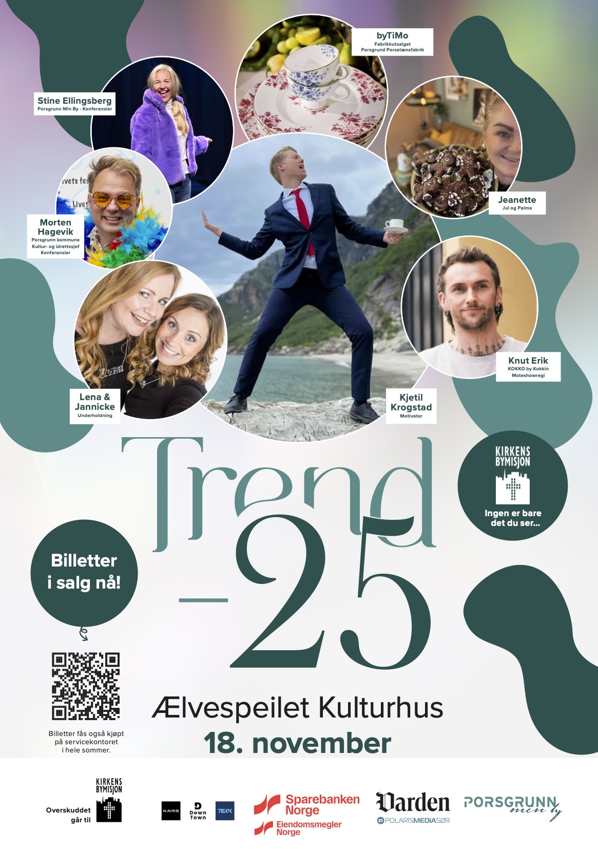 Kjetil Krogstad, Knut Erik fra KOKKO by Kokkin, Jeanette fra Palma, By Timo, Fabrikkutsalget Porsgrunn Porselen og Stine Ellingsberg fra Porsgrunn Min By inviterer deg til TREND 25 – en kveld du ikke vil gå glipp av.